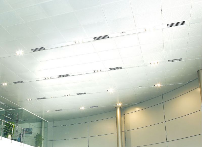 方形天花板以其款式多,整體平面效果好,線條簡(jiǎn)潔美觀,安裝方便的特點(diǎn)。廣泛使用于寫字樓、商場(chǎng)、火車站、機(jī)場(chǎng)、大型會(huì)所等場(chǎng)合。